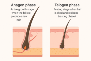 - Anagen phase: Active growth stage when the follicle produces new hair.